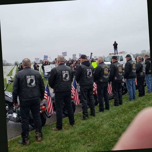 Fifty men on Harley motorcycles, riding in two perfect lines through the cemetery gates.