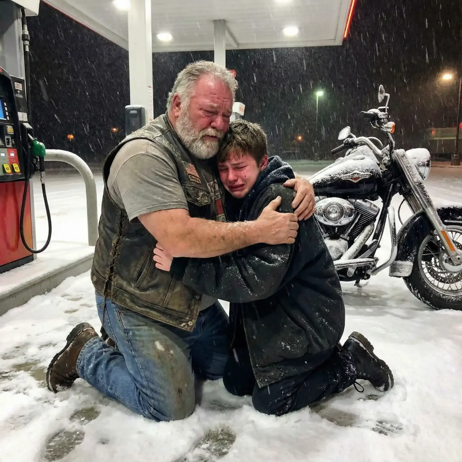 I watched him climb back onto his motorcycle. His whole body was shaking now. His hands looked stiff and unsteady on the handlebars. He was about to ride away into the freezing night without any real protection when the teenager suddenly jumped up and ran after him.