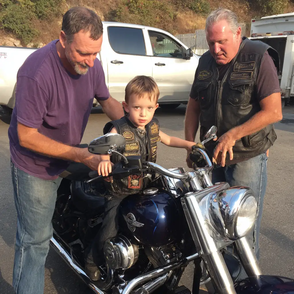 The little boy refused to let go of my dead brother’s motorcycle, even as the repo men tried to load it onto their truck. His small hands clung tightly to the handlebars while tears streamed down his face. He kept screaming, “You can’t take Uncle Tank’s bike! He promised to teach me! He promised!”