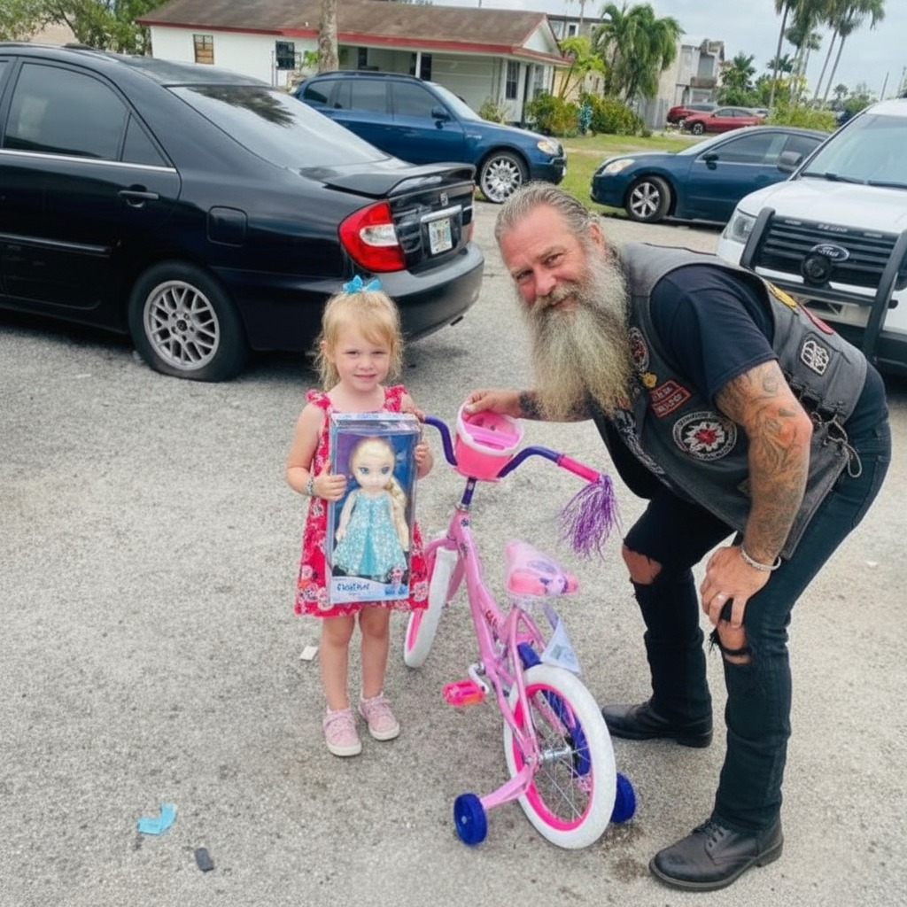 “Ma’am, I don’t mean to intrude,” he said softly. His voice didn’t match his appearance at all. “But I couldn’t help overhearing. When’s your little girl’s birthday?”