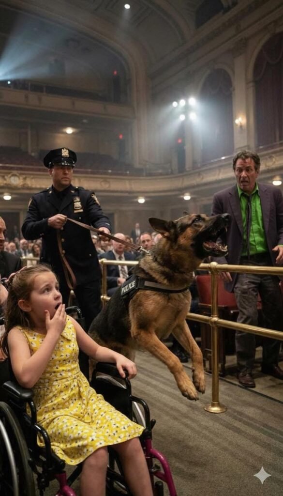 His body went rigid, every muscle locked into a posture Nathan Cole recognized with a jolt of dread—not aggression, not confusion, but confirmation. The bark that had torn through the auditorium fell silent, replaced by a low, vibrating growl that did not waver.