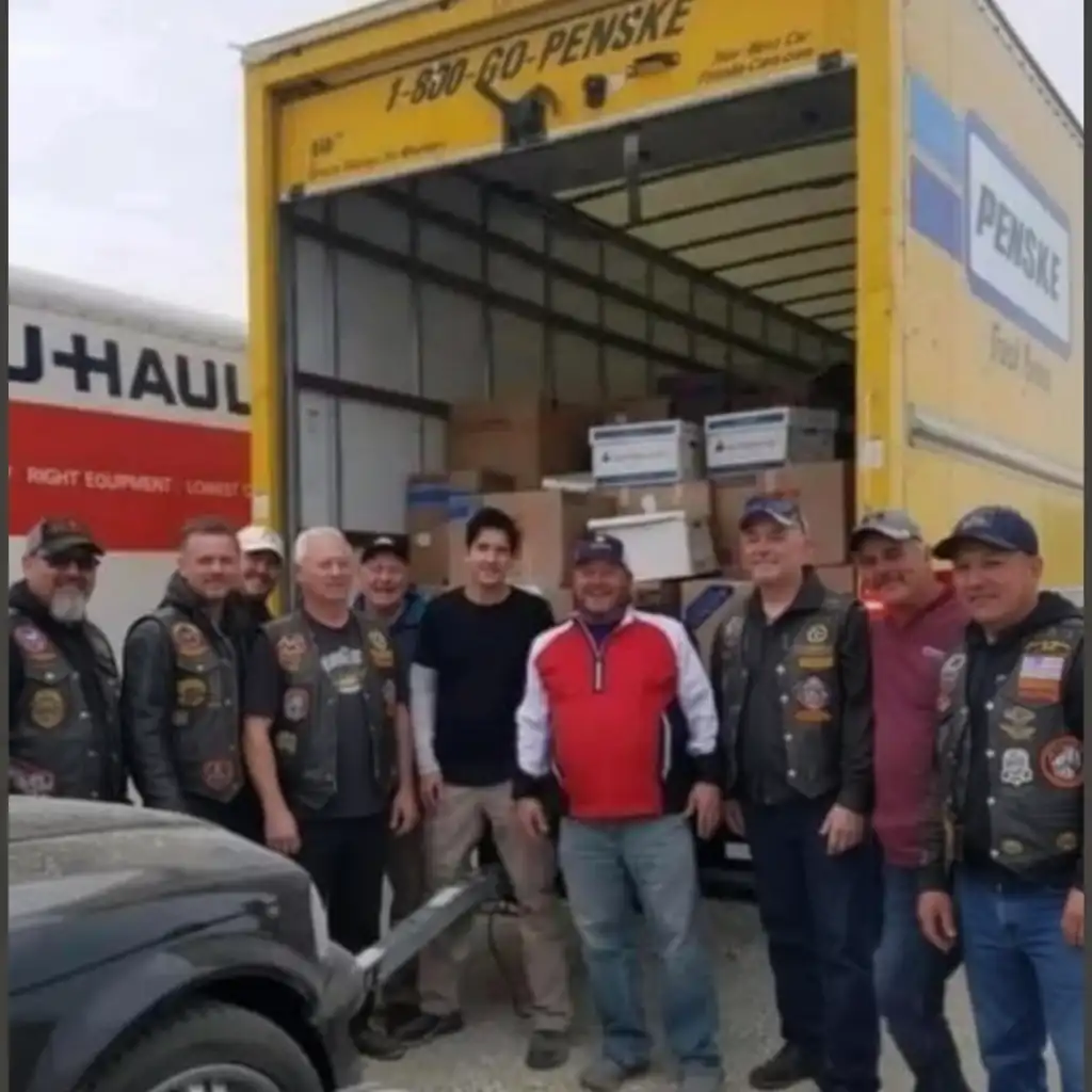 By 7 AM, the bikers had already loaded nearly everything into a U-Haul and a Penske truck they had rented themselves.