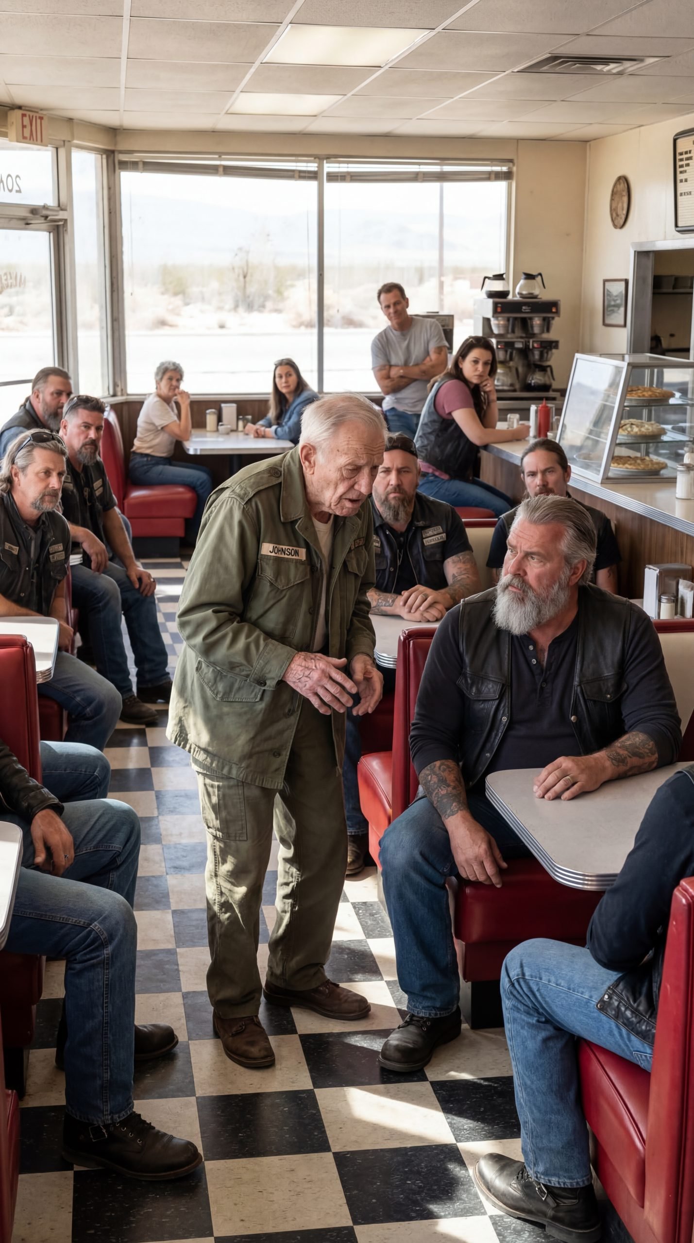 Late morning wind pushed dust across the cracked parking lot outside Maggie’s Roadhouse Café in Needles, California. Inside, the diner…
