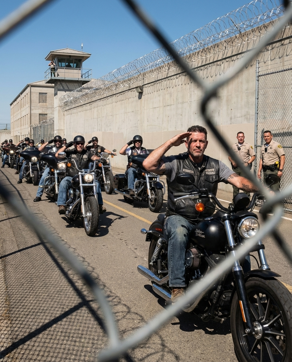 Dozens of Bikers Raised One Hand Outside a Prison — Guards Thought It Was a Signal Until the Truth Changed EverythingEngines roared past the prison walls as dozens of bikers lifted one hand in perfect unison—guards reached for alarms, rifles angled downward, and inside a lonely cell, a teenager stopped breathing for a completely different reason.