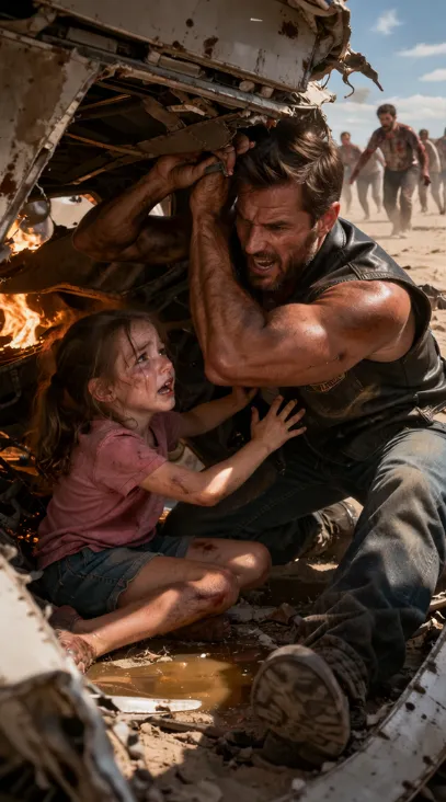 The heat hit me as I vaulted the guardrail and sprinted across the sand toward the wreckage.