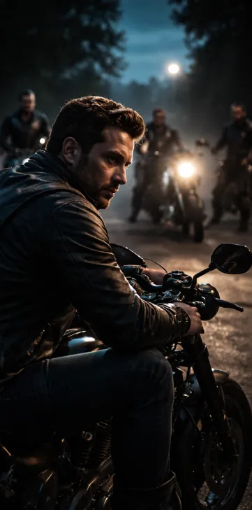 His gloved hands rested lightly on the handlebars, as if the machine beneath him was breathing with him. His eyes weren’t on the road ahead, or on the men beside him.