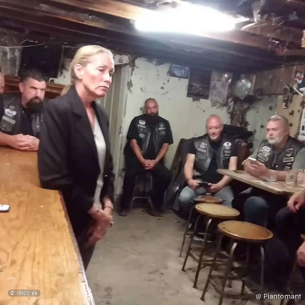 A younger biker with sleeve tattoos added, “We’ll park outside his apartment building. Legally. On public property. We’ll sit outside his work during his entire shift. We’ll be at every restaurant he goes to.”