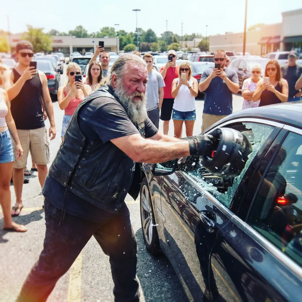 Then he got off his bike, reached into his saddlebag, pulled out a tire iron, and swung it straight through the driver’s side window.