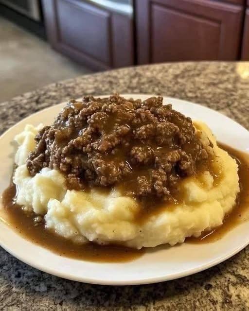 This familiar comfort dish is an ideal way to warm up on a cold day. The creamy mashed potatoes create a perfect foundation for the rich, savory ground beef gravy. Quick to prepare, hearty, and easy to customize, it delivers deep satisfaction.