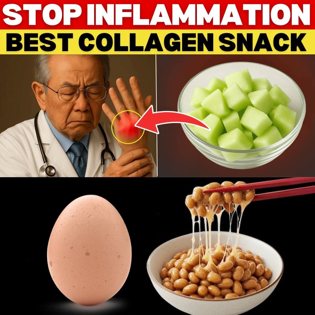 In Japan, where many live well into their 90s with strength and clarity, diet is considered the foundation of longevity. One Japanese doctor—known for his work on anti-aging nutrition—claims that chronic inflammation and collagen loss are the hidden culprits behind tingling hands, weak legs, and joint pain. His advice? Eat specific collagen-boosting snacks daily to restore flexibility, reduce inflammation, and keep your muscles and nerves strong.Let’s explore the eight most powerful collagen-rich snacks that can help your body heal, strengthen connective tissues, and stop that uncomfortable tingling for good.1. Natto (Fermented Soybeans) – Japan’s Sticky SuperfoodNatto is a traditional Japanese food made by fermenting soybeans with Bacillus subtilis. It’s famous for its stringy texture and distinctive aroma—but more importantly, it’s a collagen-supporting powerhouse.Rich in vitamin K2, natto kinase, and amino acids, natto improves blood circulation and strengthens bones and joints. The fermentation process increases collagen bioavailability and helps fight inflammation.Regular consumption has been shown to:Improve joint flexibilityReduce swelling in fingers and kneesSupport nerve regenerationTip: Eat 1 small pack (around 50g) per day, preferably in the morning with a drizzle of soy sauce or mustard.2. Boiled Egg – Natural Source of Collagen and Amino AcidsEggs are one of the simplest and most effective collagen-boosting foods. The egg white is loaded with proline and glycine, two essential amino acids for collagen synthesis.The yolk, meanwhile, provides vitamin D, zinc, and biotin, which improve muscle tone and skin elasticity. Japanese doctors often recommend one boiled egg daily to maintain nerve health and prevent weakness in the hands and legs.Bonus: The eggshell membrane is also rich in collagen peptides—some Japanese supplements even use it as a key ingredient for joint repair.3. Melon (Especially Honeydew) – Hydrating Collagen EnhancerHoneydew melon isn’t just refreshing—it’s a natural anti-inflammatory snack. It contains vitamin C, a critical cofactor for collagen production, and cucumis extract, which has been linked to skin elasticity and reduced oxidative stress.Melon also provides silica and potassium, which support muscle and nerve function, making it ideal for people with tingling sensations in their extremities.Tip: Eat 1 cup of melon cubes daily as a mid-afternoon snack to rehydrate and rejuvenate connective tissues.4. Fish Skin (Especially Salmon or Mackerel Skin)In Japan, grilled fish skin is considered a beauty food. It’s naturally rich in marine collagen peptides, omega-3 fatty acids, and elastin, which reduce inflammation throughout the body.Fish collagen absorbs more efficiently than bovine collagen, helping repair tissues, tendons, and even small nerve fibers. Regular intake supports joint cushioning and mobility—key for preventing weakness in the legs.Pro tip: Add crispy salmon skin to rice bowls or salads for a crunchy, collagen-rich topping.5. Chicken Feet or Collagen BrothFor centuries, Japanese and Chinese medicine have recommended slow-cooked chicken feet or bone broth as an elixir for joint health. When simmered, the connective tissues release gelatin, type II collagen, and glucosamine, all crucial for rebuilding cartilage and soothing inflammation.A warm bowl of collagen broth daily can:Lubricate stiff jointsReduce tingling and numbnessImprove skin elasticity and wound healing6. Edamame – Plant Collagen PrecursorThese young soybeans are a common snack in Japan and are packed with isoflavones, vitamin C, and copper—key nutrients for collagen synthesis.Edamame also contains omega-3 ALA, which supports nerve repair and reduces muscle soreness. Combined with collagen-rich foods like fish or eggs, it can amplify the body’s repair mechanisms.Snack idea: Steam edamame with sea salt and enjoy it warm for a protein-rich collagen boost.7. Seaweed (Wakame and Kombu) – The Collagen ShieldSeaweed is abundant in glycine, taurine, and iodine, all essential for nerve and skin health. Japanese researchers have found that compounds in seaweed protect existing collagen from breakdown caused by stress and oxidation.Its polysaccharides help maintain hydrated, elastic skin and flexible joints. Regular seaweed intake can also prevent calcium loss—supporting strong legs and better posture in older adults.Eat it as: Seaweed salad, miso soup topping, or even roasted seaweed snacks.8. Matcha Green Tea – The Antioxidant Collagen ProtectorMatcha is more than a trendy drink—it’s a collagen protector. The catechins in matcha (especially EGCG) inhibit enzymes that degrade collagen and elastin.Its potent antioxidants reduce systemic inflammation, improve circulation, and protect nerves from oxidative damage. Drinking one cup of matcha daily supports smoother skin, stronger connective tissue, and improved leg endurance.Tip: Whisk 1 teaspoon of matcha powder with hot water, or blend it into smoothies with almond milk and a drizzle of honey.The Science: Why Collagen Matters for Hands and LegsCollagen makes up about 30% of the body’s total protein and is vital for maintaining strong muscles, ligaments, skin, and nerves. When collagen declines with age or inflammation, the body shows signs like:Tingling hands and feetWeak legs or difficulty climbing stairsJoint pain or stiffnessSagging skin or wrinklesBy eating collagen-rich snacks daily—especially those high in vitamin C, glycine, and omega-3s—you can stimulate your body’s natural collagen production and repair damaged tissues from the inside out.Final Thoughts: Ancient Wisdom, Modern HealthJapan’s oldest doctors often say, “Food is medicine.” These eight collagen-rich snacks prove that healing doesn’t require expensive supplements or pills. By including natto, eggs, melon, fish skin, collagen broth, edamame, seaweed, and matcha in your daily diet, you can fight inflammation, stre