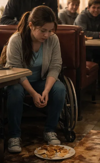 Harper sat carefully at the edge of the booth, her wheelchair positioned beside the table with practiced precision. Years of living in spaces that weren’t designed for her had taught her how to move without drawing attention.