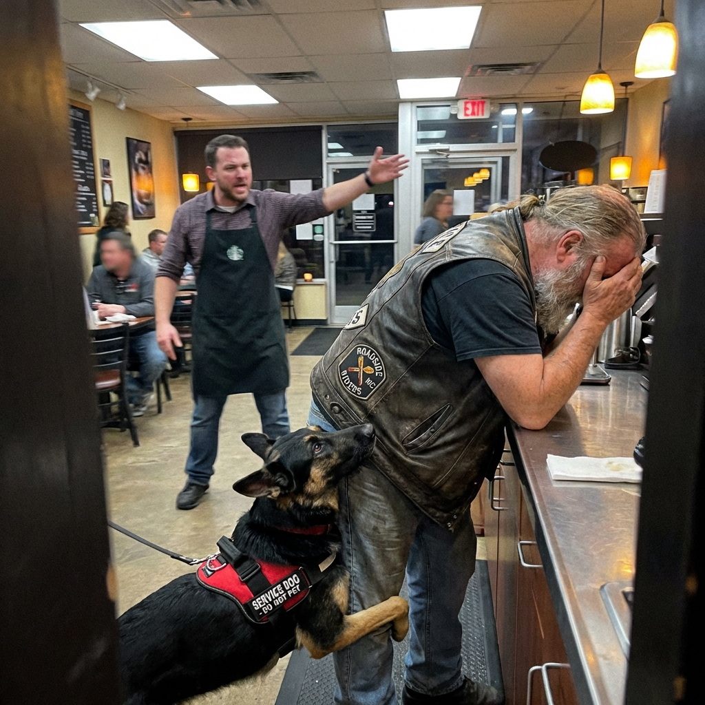 I grabbed a chair. Helped him into it. The dog sat right beside him. Pressed against his leg. The biker’s hand rested on the dog’s head. I watched his breathing slow down.