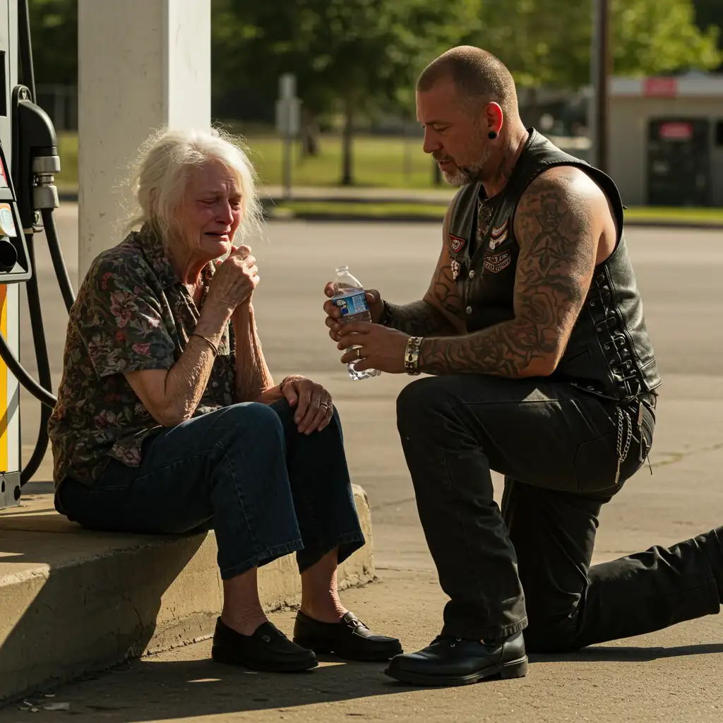 Without saying another word, the man walked into the gas station. A moment later he returned with a bottle of water and a bag of ice.