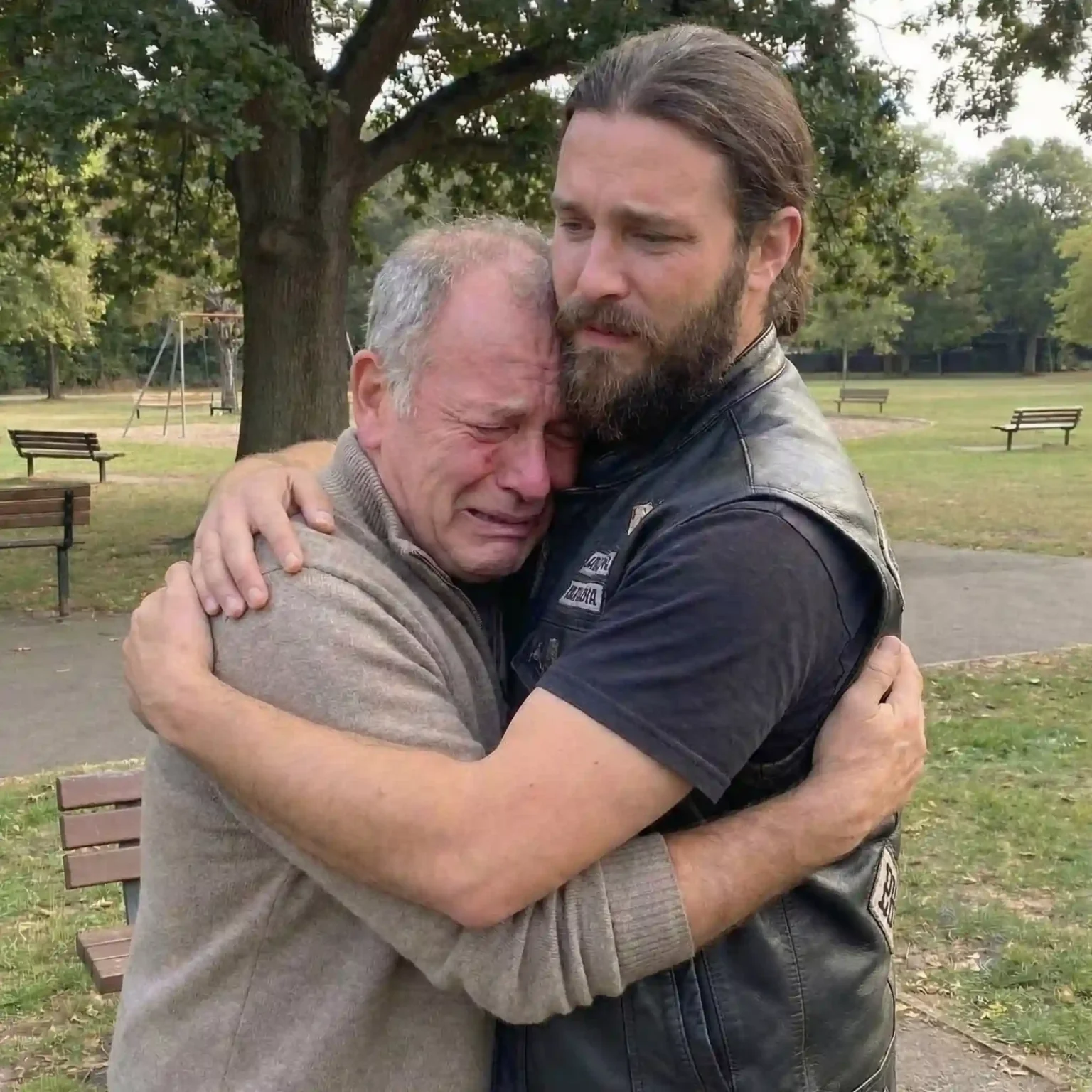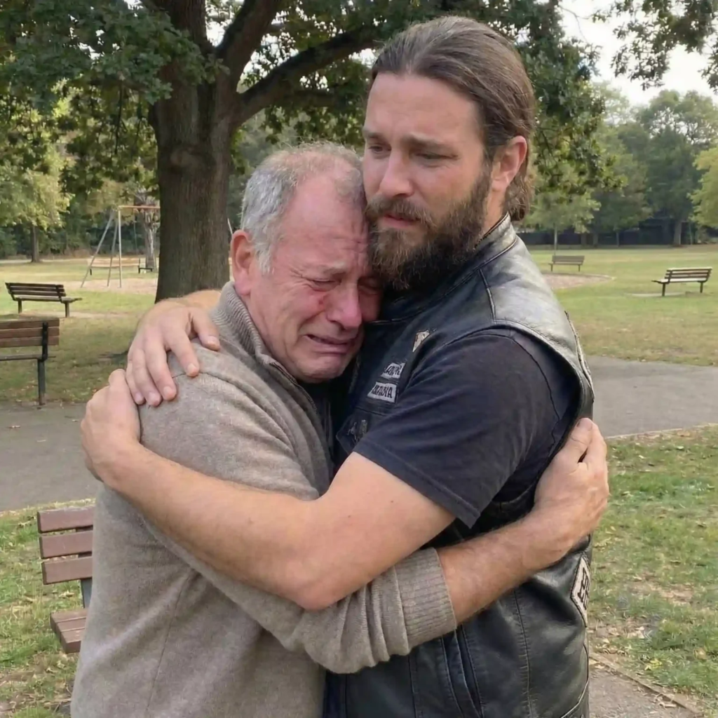 He was bigger now—broad shoulders, arms covered in tattoos, a thick beard streaked with gray. He looked exactly like the kind of man I’d spent years fearing he would become.