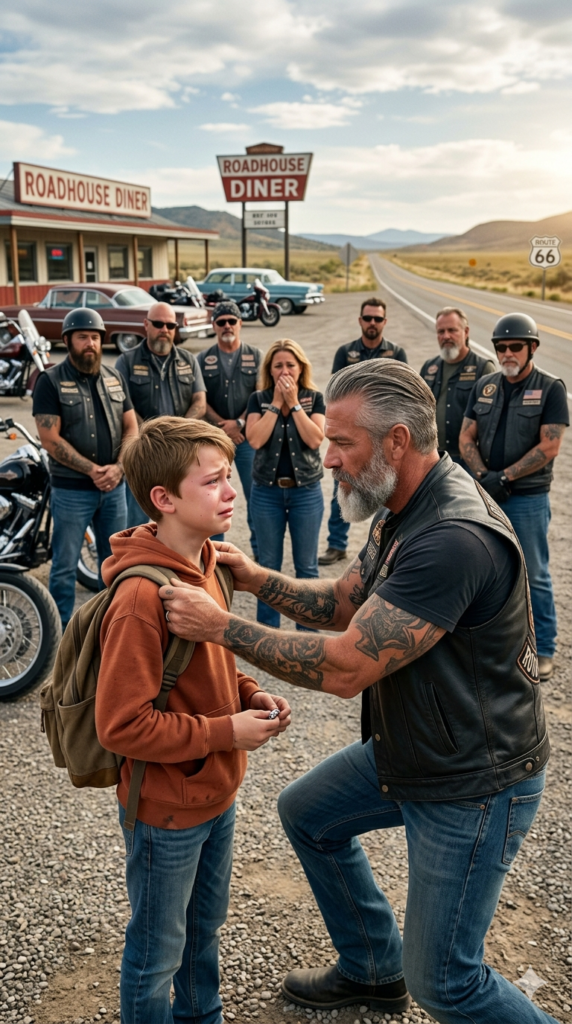 As the line of motorcycles rolled out onto the highway, Nolan stood in the oversized vest, holding his father’s ring tightly in his hand. He wasn’t watching strangers anymore.