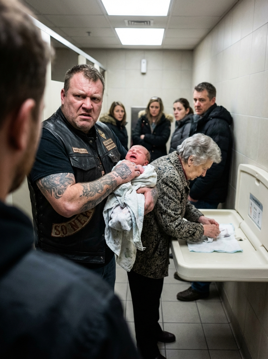 I helped a biker change a soaked baby in a public restroom because no one else would go near him…