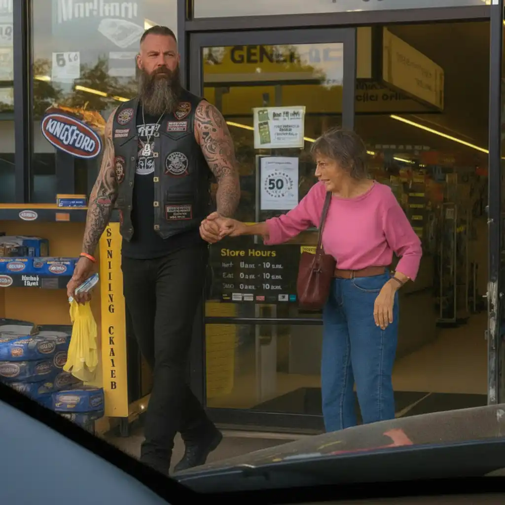 I’m the biker who was standing behind her. Six-foot-three, 260 pounds, covered in tattoos, wearing my Demons MC vest—the kind of man mothers pull their children away from in parking lots.