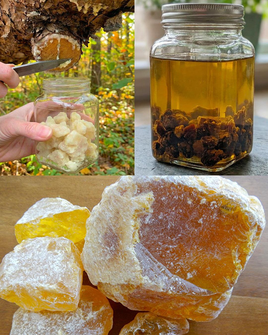 • Don’t cut the tree just to get resin. Collect what has naturally formed.