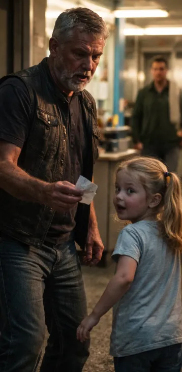 “I’m at a truck stop on Route 41 South,” I said quietly. “I think a child’s been taken. White male, about forty. Brown hair, green jacket. Little girl—blonde, maybe five or six. She just handed me a note saying he took her.”