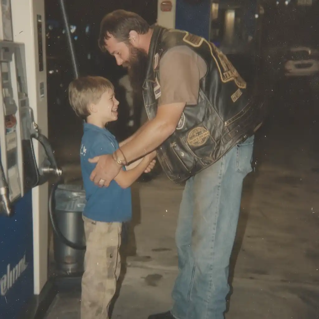 “No!” he cried, squeezing even tighter. “I know it’s you! You have the same jacket! The eagle on the back! And you smell like motorcycles and coffee just like before!”