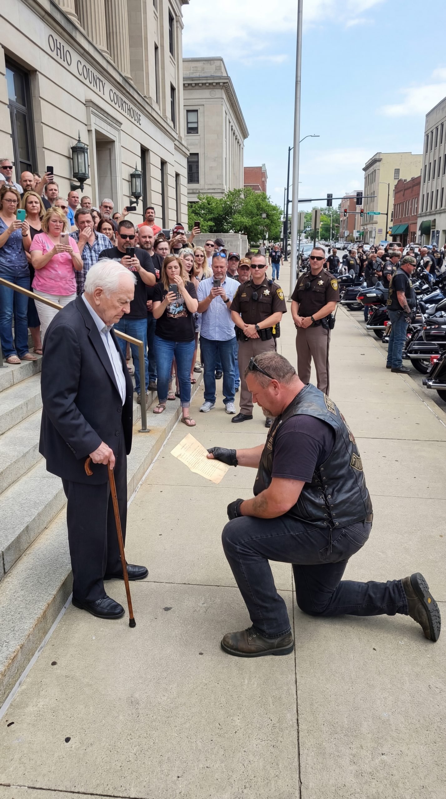 At 11:42 a.m., the steps of the Franklin County Courthouse in downtown Columbus looked exactly the way they always did in late autumn—gray stone, pale sunlight, and a wind that slipped through coats as if they were made of thin paper.
