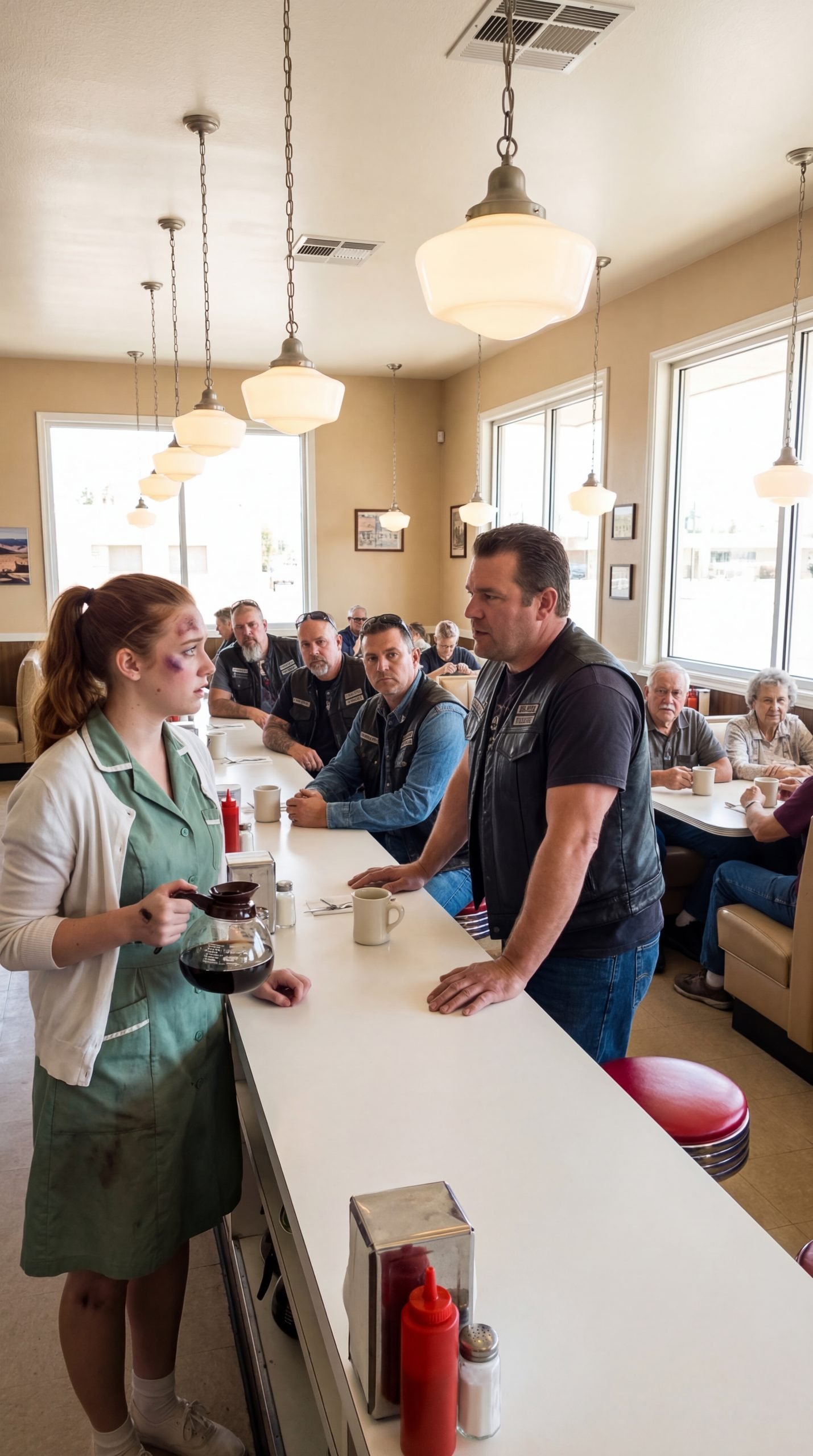 The diner smelled like coffee, grease, and lemon cleaner — layered over something else. Something harder to name.
