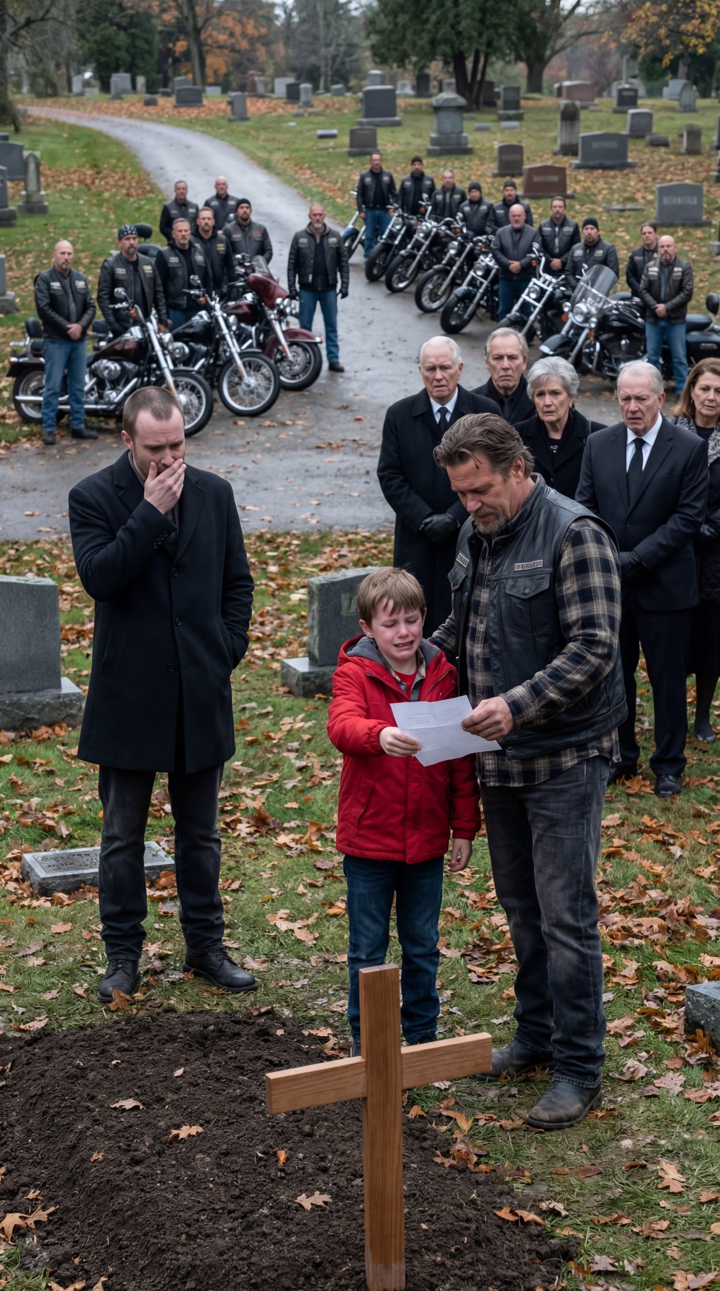 For a moment, the crowd stared. A cemetery was sacred. You didn’t show up uninvited. You didn’t interrupt. You didn’t bring a motorcycle to someone’s grief.