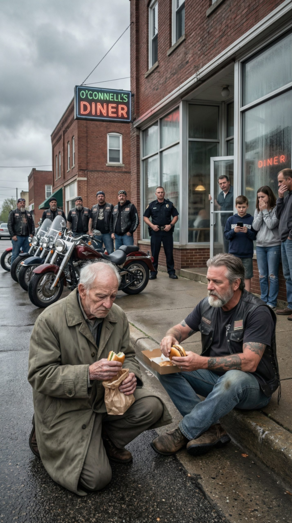 A few customers noticed him. One woman frowned before stepping around him. A man exiting the diner muttered something under his breath about shelters. A teenager paused just long enough to take a photo, the glow of his phone screen reflecting in the diner window.
