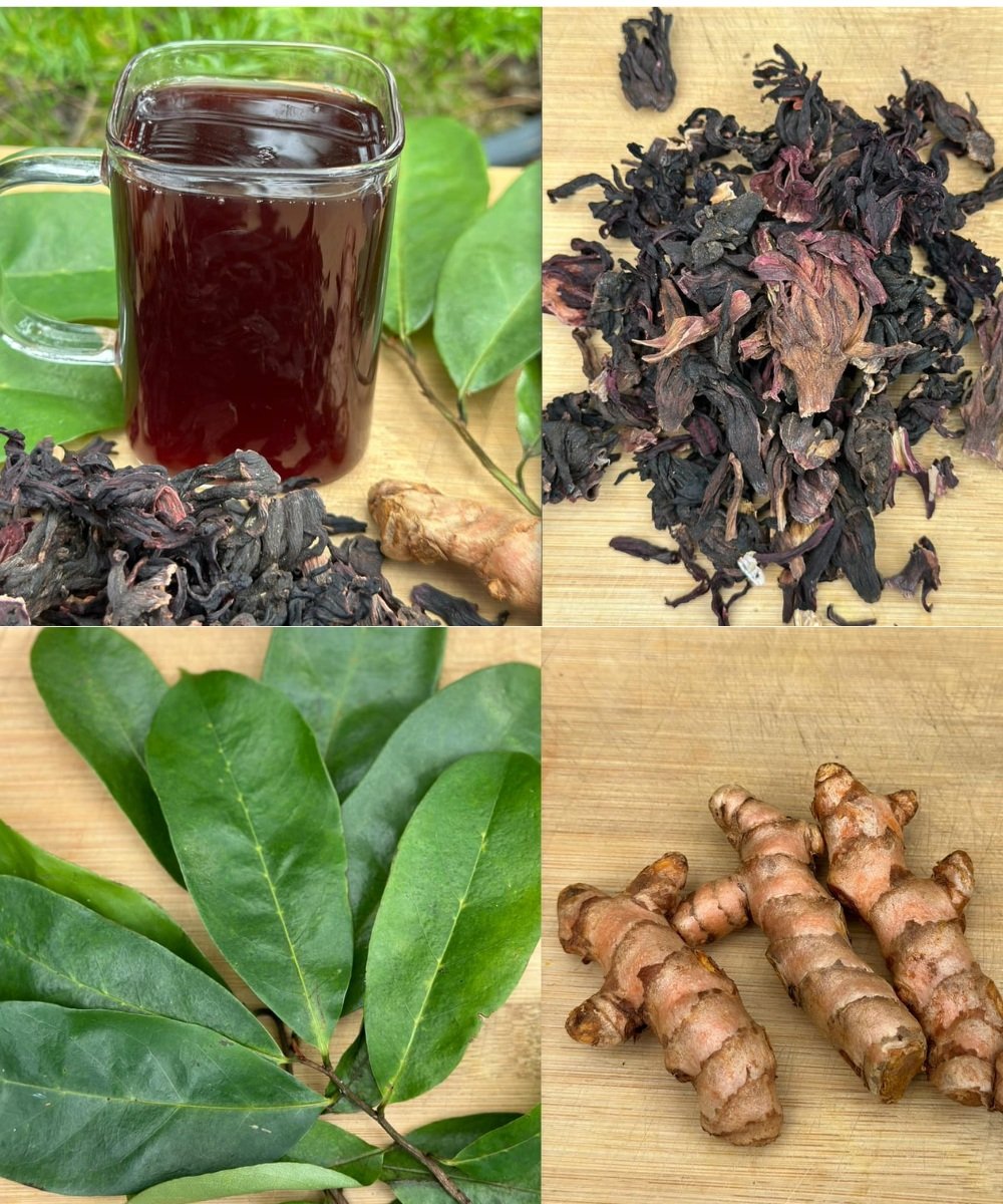 Add turmeric, soursop leaves, and hibiscus flowers into a small saucepan. - Add Water