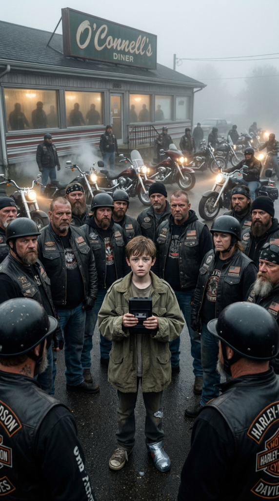 At exactly 6:11 a.m., when the town of Willow Bend, Montana still slept beneath a low blanket of fog, a boy named Noah Carter stood frozen just inside the doorway of Evelyn’s Sunrise Diner. The bell above the door rang too cheerfully for a moment that felt anything but light. Noah clutched a worn backpack against his chest, his fingers stiff from cold and fear, his breath shallow as if even breathing too loudly might give him away.