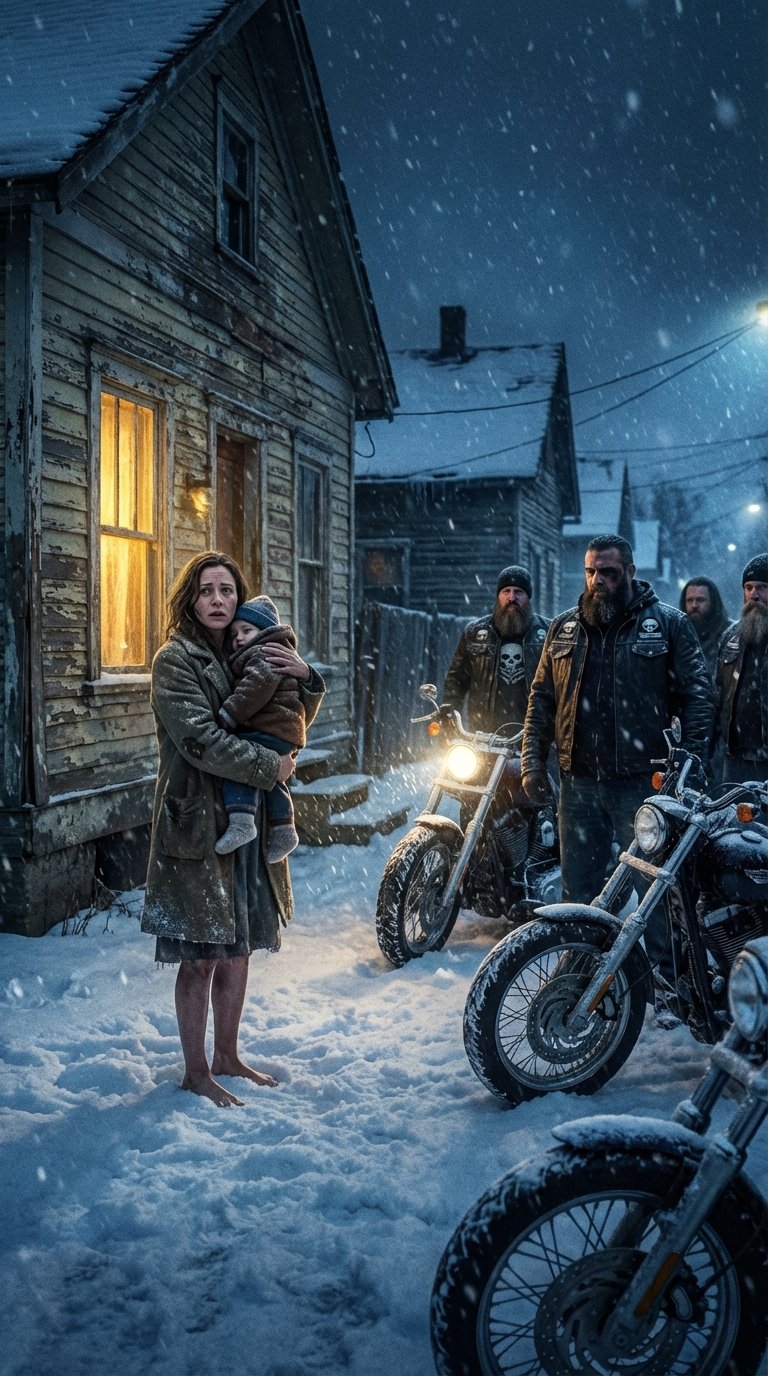 Motorcycles. Big ones. Black. Men in leather soaked with snow. Helmets hid their faces, but fear showed in how they moved.