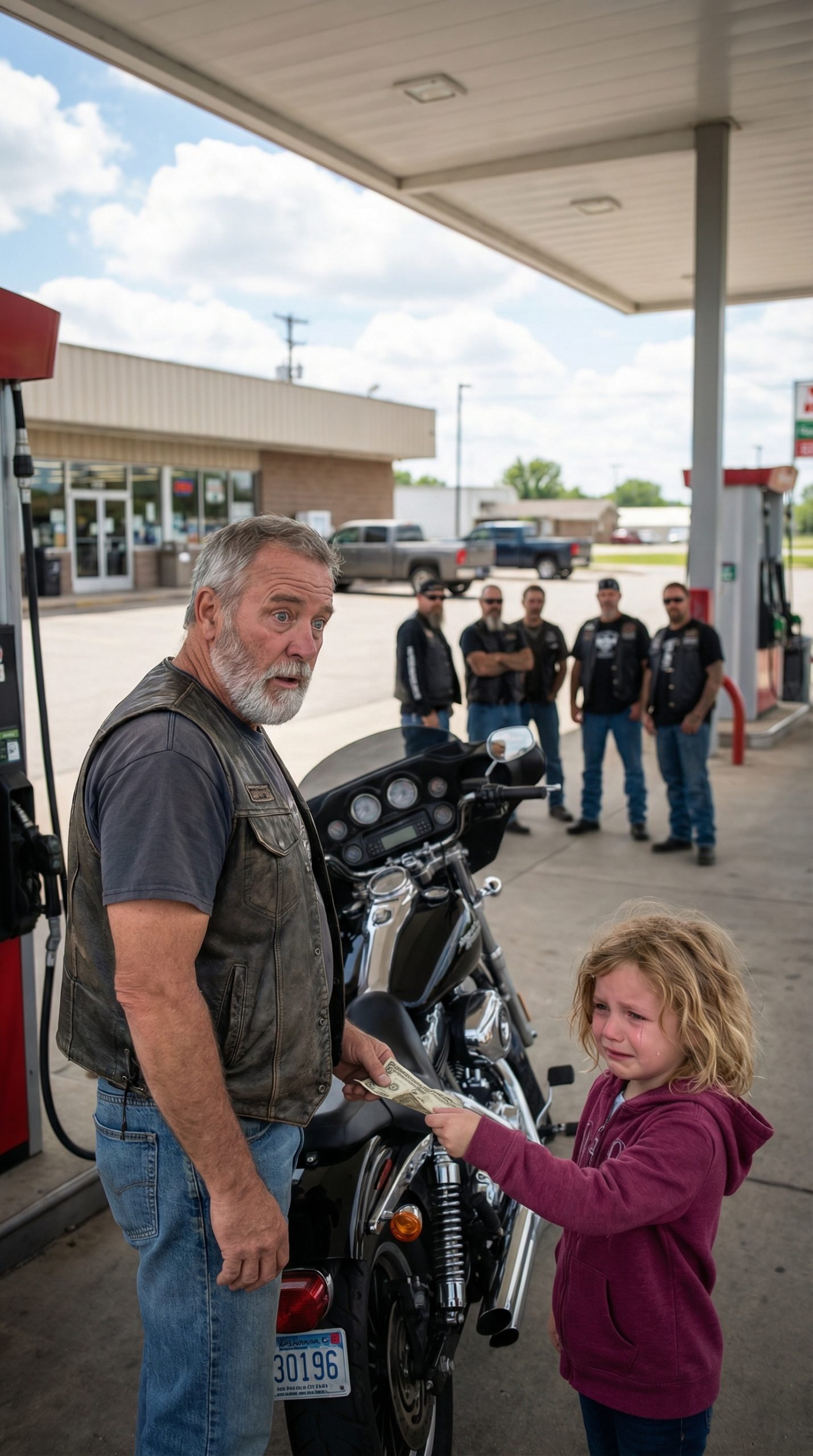 The morning was settling into that quiet space between night and day, when the sky over the Midwest looked thin and colorless. The fuel canopy off Highway 27 hummed with a tired electricity, the kind belonging to places meant for passing through rather than staying. Harold “Hal” McRae stood beside his motorcycle, watching the numbers spin on the pump. The smell of gasoline mixed with damp asphalt and cold air. At sixty-two, Hal moved with the patience of someone who had learned that rushing rarely led to anything good. His body, full of quiet stillness, carried the weight of years spent listening more than talking, knowing that small mistakes could echo into lasting consequences.