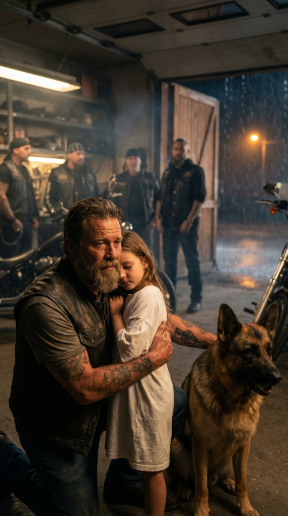 The German Shepherd sat beside us, sides heaving, his eyes fixed on the girl. A deep cut ran along his hind leg, blood dripping onto the floor.