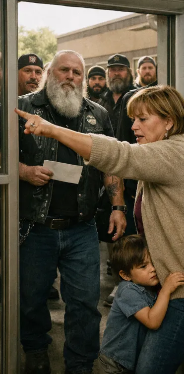 The glass doors burst open as bikers flooded into the terminal—boots heavy against the floor, leather jackets creaking as they moved with silent coordination.