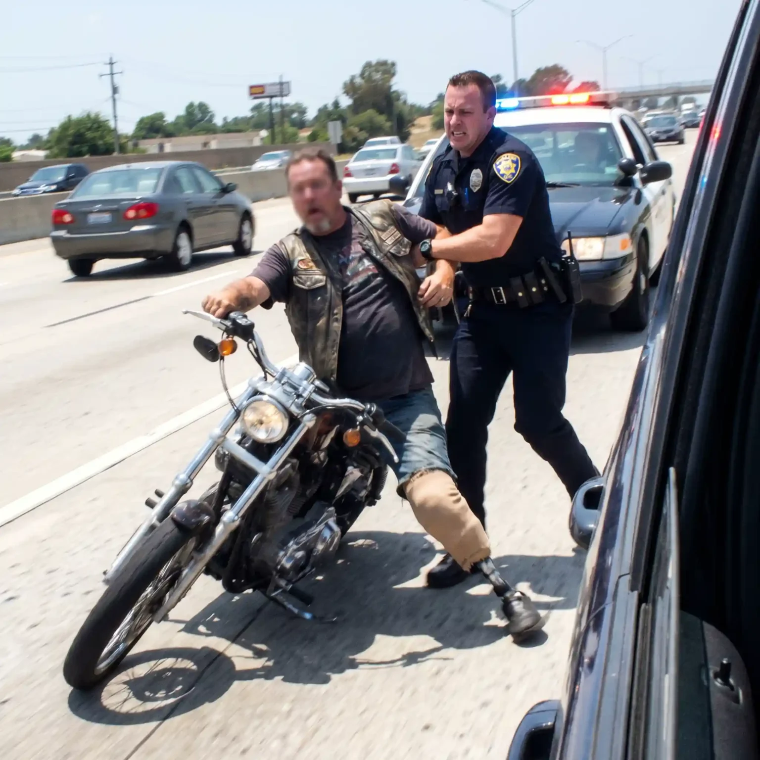 And twenty feet away—out in the right lane—was his prosthetic.