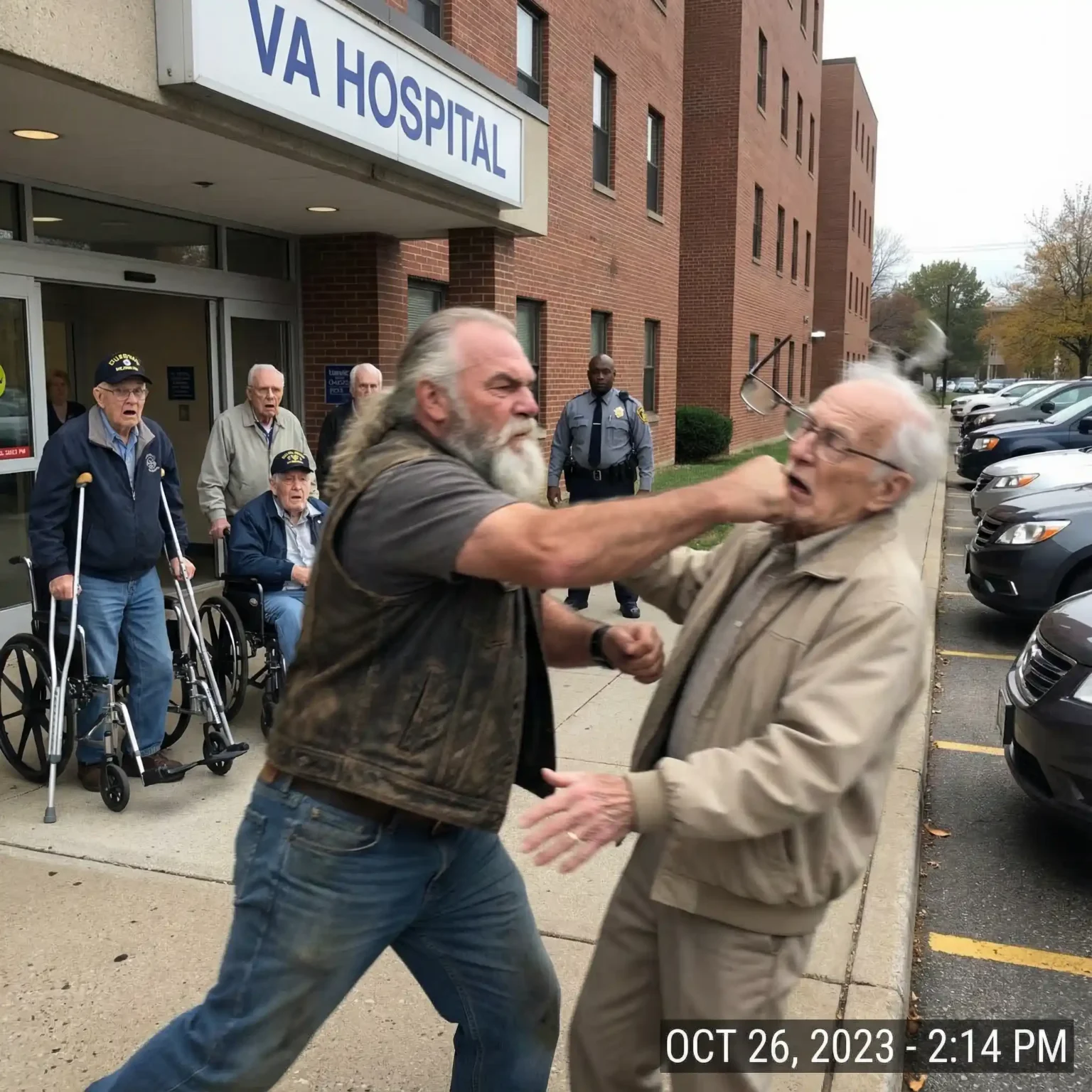 I watched a biker punch an elderly man outside a VA hospital—and nobody called the cops. Not the nurses smoking near the entrance. Not the security guard standing ten feet away.